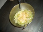 6) In a separate bowl, beat the eggs, and sprinkle the egg mixture onto the boiling ingredients in the pan (make some circles)