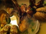 the trick of this dish is the amount of olive oil (a lot) and the time to cook the sliced onion (long). i remember we finished a glass of white wine or maybe 2 glasses of it, while we were waiting for the onion to be ready. you just have to simmer it slowly and slowly, until the onions are very tender and transparent. after 2 glasses, you can pour the paprika, again cook it for a while, and then add tomatoes and simmer again for 5 minutes or so. add potato slices, simmer for another 5 – 10 minutes, and finally add the fish, olives and other seafood as you prefer. cook for another 5 – 10 minutes, and add salt & pepper to taste.