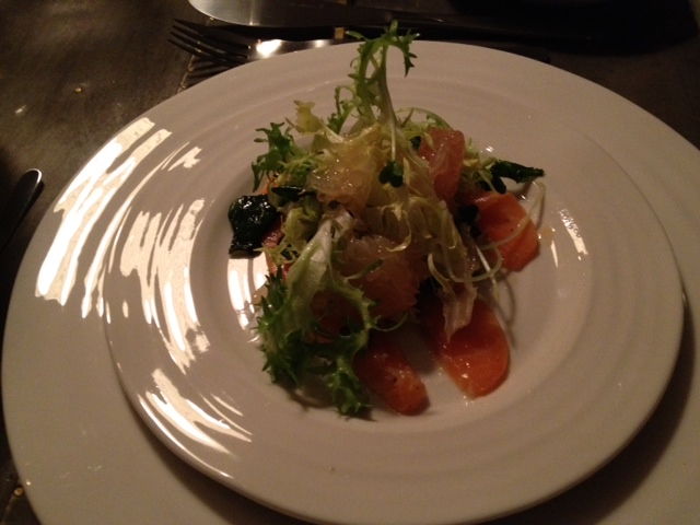 appetizer: smoked salmon salad with grapefruits vinaigrette