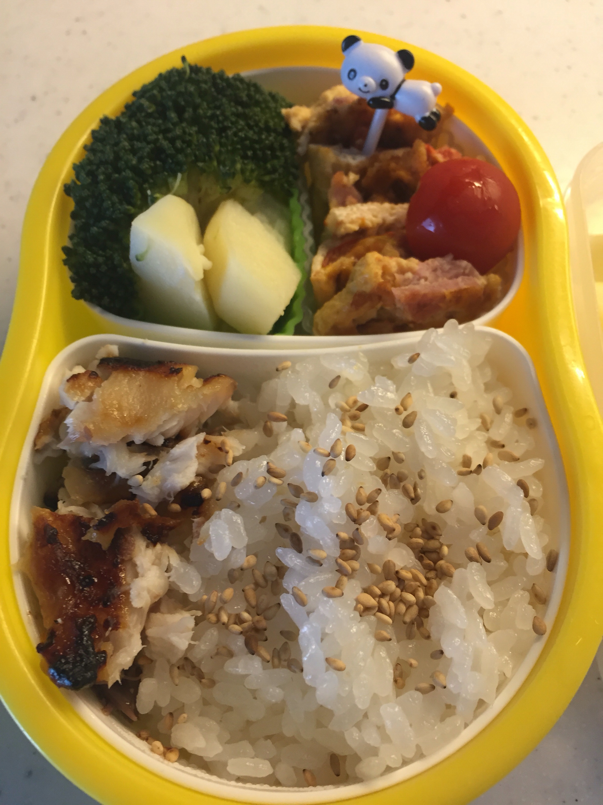 […] Grilled Sawara (Spanish mackerel) in saikyo-miso, Cherry tomato/broccoli omelet, Green beans, Stewed chicken & […]