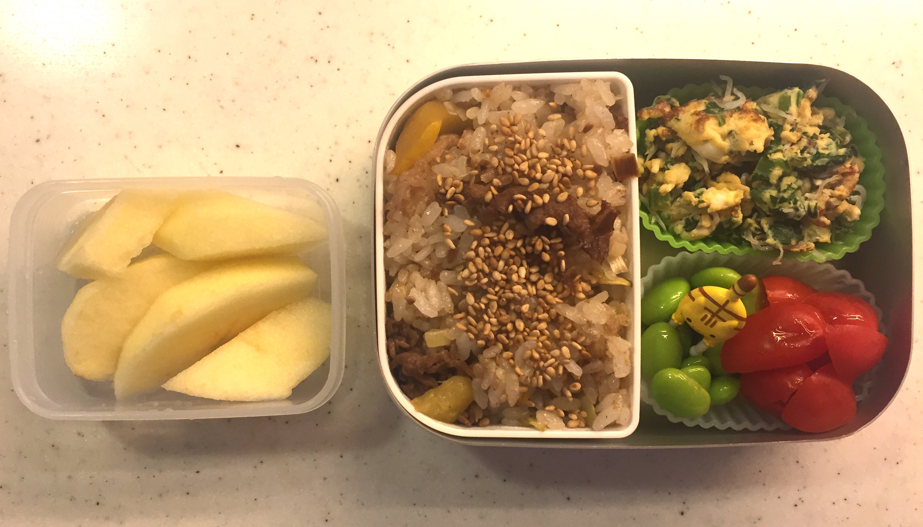 Of course I prepared most of the dishes in advance the evening before, because I’m not a morning person and cannot wake up too early. The rice is cooked with the timer on the rice cooker.