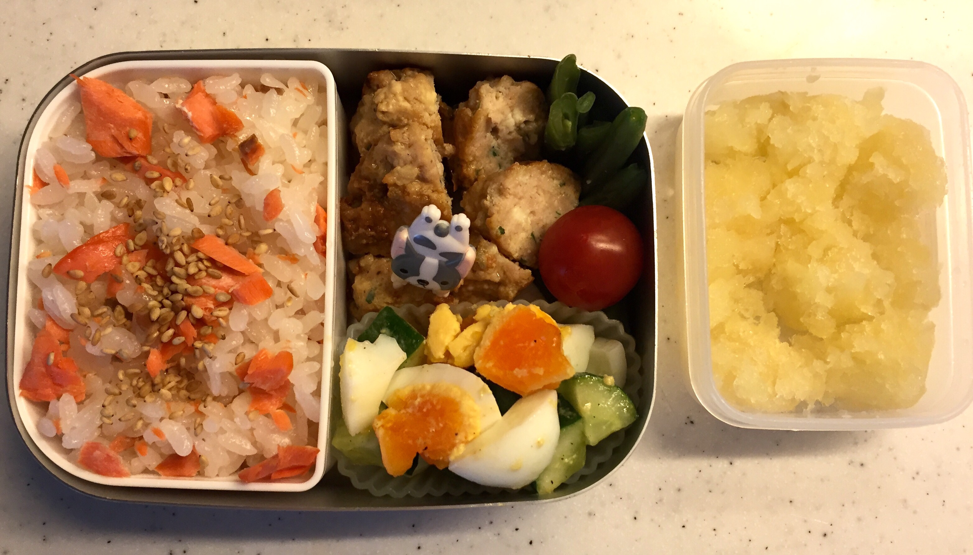Kindergarten bento for a school picnic – salmon onigiri (13/May/16)