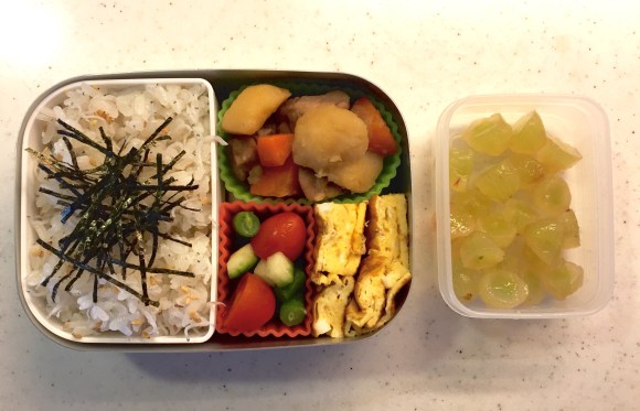 […] Niku-jaga (stewed potato & meat), Broccoli omelet, Boiled green beans, Cherry tomato, Rice with furikake […]