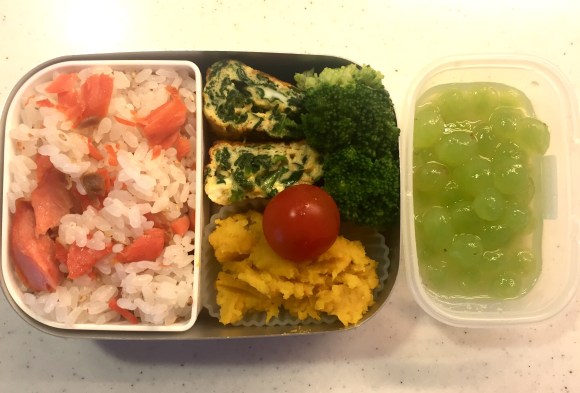 I had a rough day today with work. But the bento picture brought me smile. Our daughter couldn’t finish today’s main dish, chicken & spinach, but that seems like too small an issue to deal with.