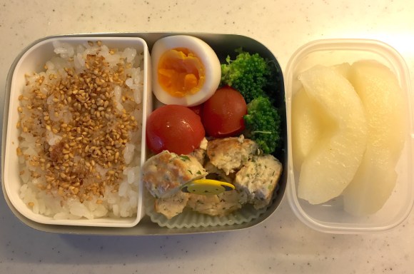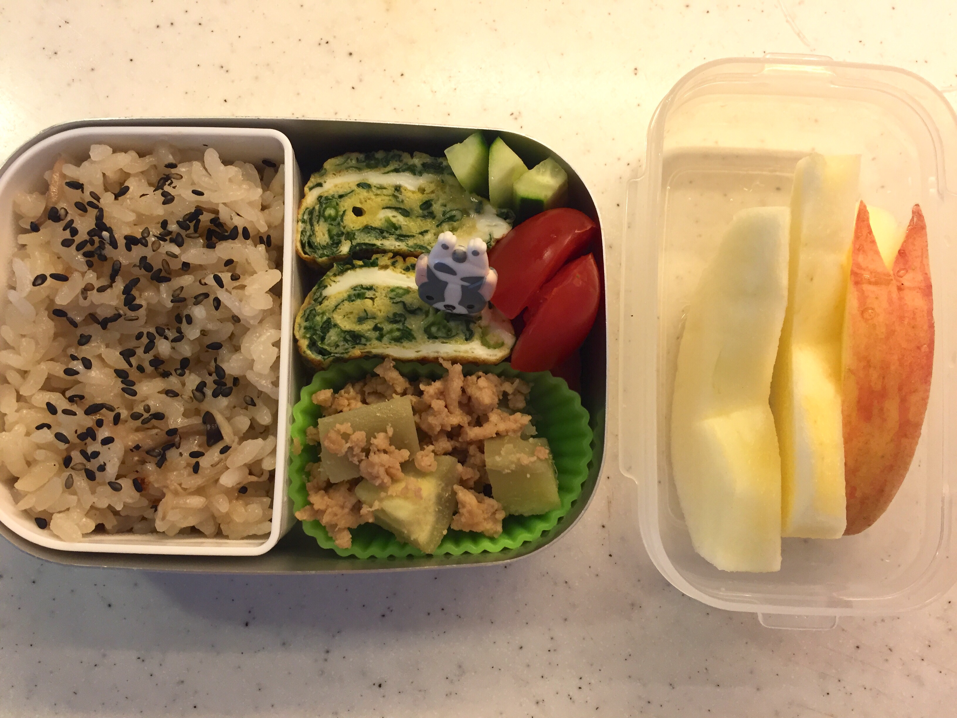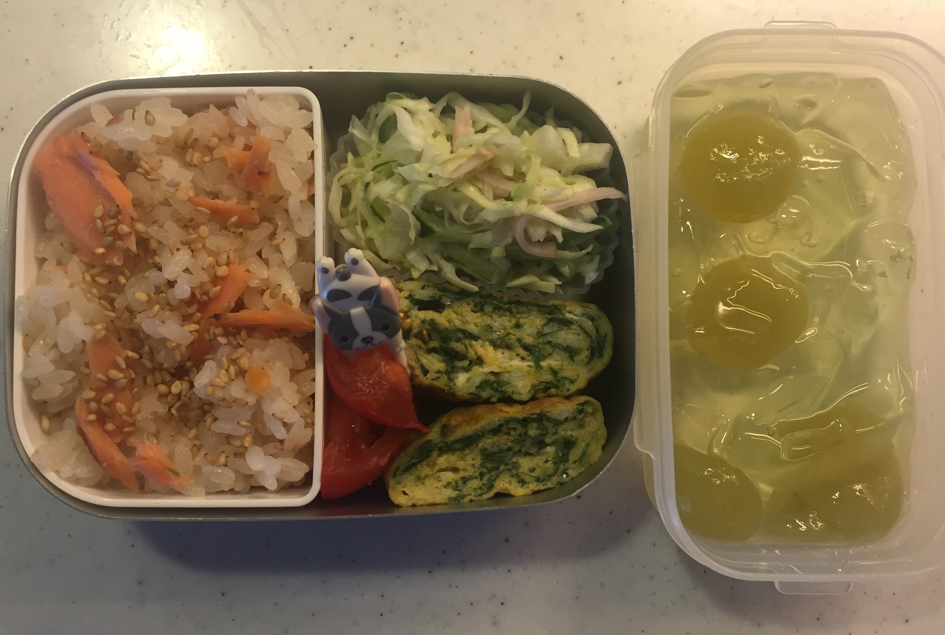Our little girl caught another cold, second one in a month, this time with some coughs and runny nose. In the evening before she seemed a little weak but fine, so I set the timer for the rice cooker and put my alarm for the daily bento making the following morning.