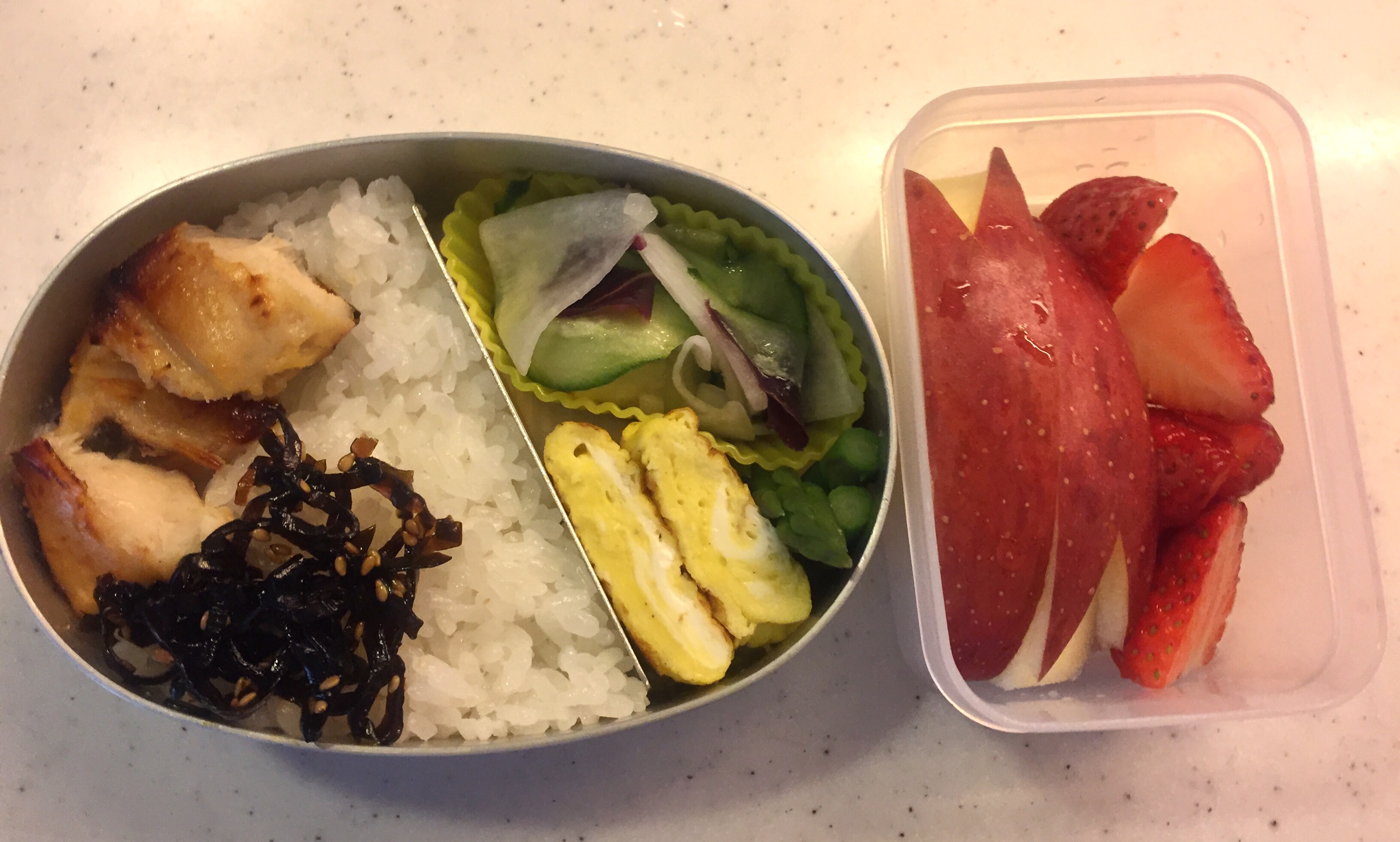 Unlike my “tenuki” bento the other day, I put some more effort in my daily bento making in the following days, using mostly freshly prepared ingredients.