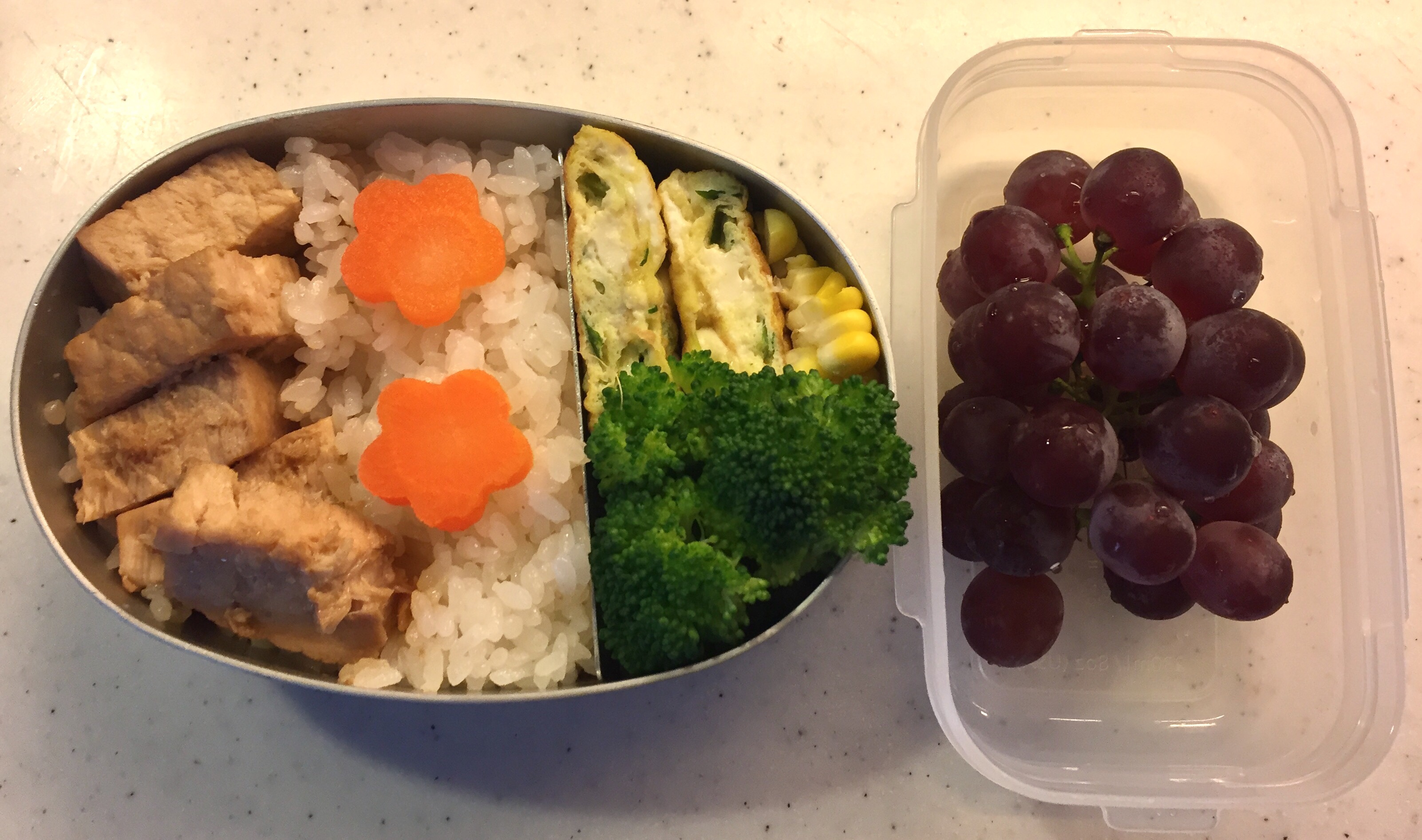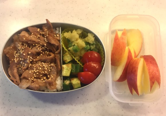 Kindergarten bento – for the past two days (3 & 4 Jul/17) 04/07/2017 Monday, 3 July Nikudon bento Tuesday, 4 July Simmered “Kajiki,” sword fish nimono bento
