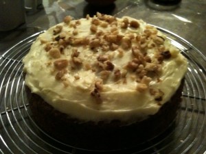 here is my first attempt to bake a carrot cake with cream cheese frosting.