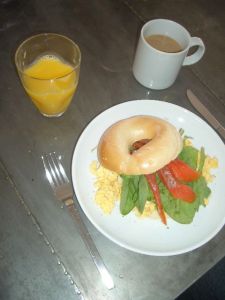 we had bought some fresh bagels the day before (we usually freeze them for future consumption), and there were eggs and smoked salmon in the fridge. at first i was thinking about making eggs benedict, but damn am not very good at making porched eggs. so this is what i made: