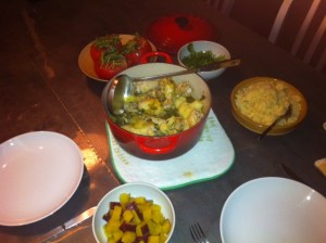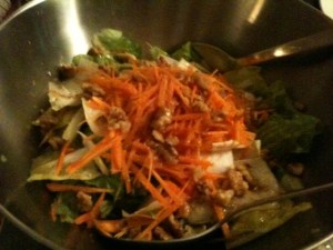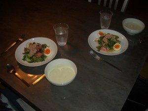 For dinner, Chef F made this delicious chicken filet with foie gras sauce. And the mashed potato… mmm I can still taste this creamy, sweet mash only a French person can make… I’m pretty sure he used generous amount of butter, but maybe it’s better not to find out exactly how much… The sautéed mushroom was nutty and hearty, which was a perfect combination with the chicken and mash. Chef F served the same dish sans the foie gras sauce for their son and our daughter, on a small red kids table. Our daughter absolutely loved it, especially the mash. At the age of five she already knows the divinity of the French cooking.