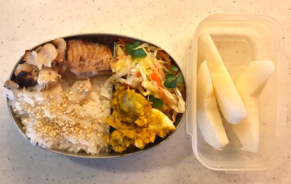 For the past weekend, we went for a short trip out of Tokyo. We came back to our apartment on Sunday evening, resulting in the usual problem of not having enough food in the fridge for our daughter’s bento the next day.