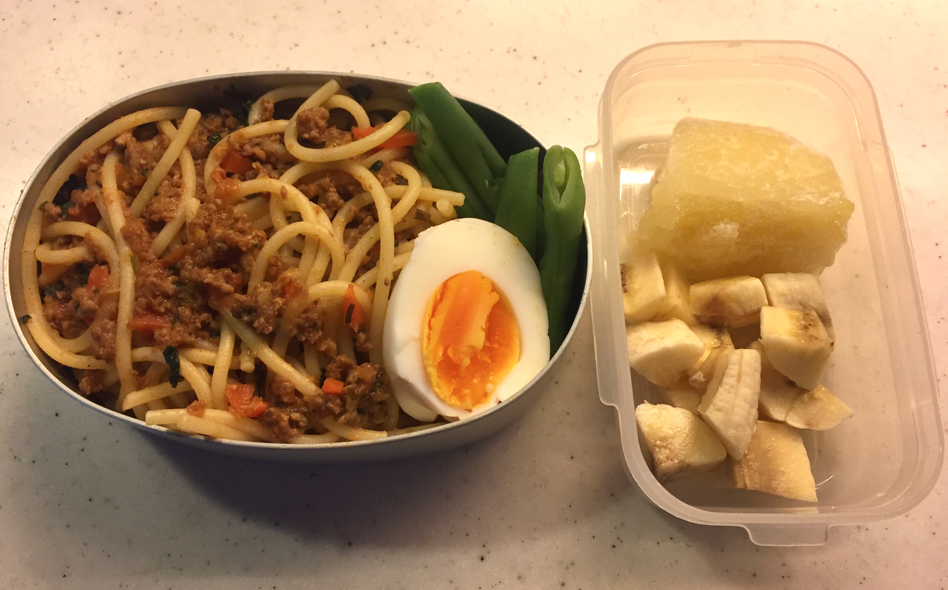 When I was growing up, my mum never packed pasta for lunch. Maybe sandwich if not rice, but never ever pasta in my recollection. In fact my mum hardly ever cooked pasta as it wasn’t as popular and widespread as it is now. As far as pasta is concerned, I remember my mum’s macaroni salad (i.e. macaroni mixed with sliced cucumber, carrot and ham, seasoned with mayonnaise) and Spaghetti Napolitan (i.e. spaghetti with bacon, green pepper and onion, seasoned with tomato ketchup – no idea why it’s called Napolitan though). That’s about it.