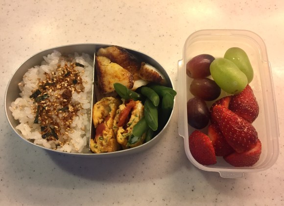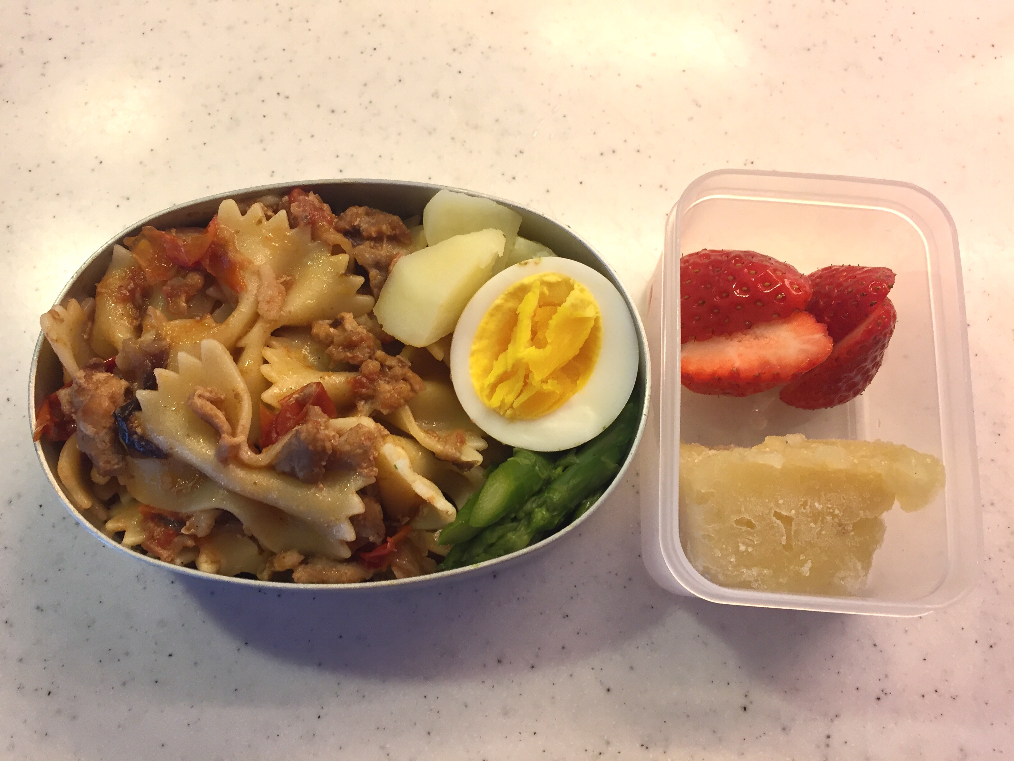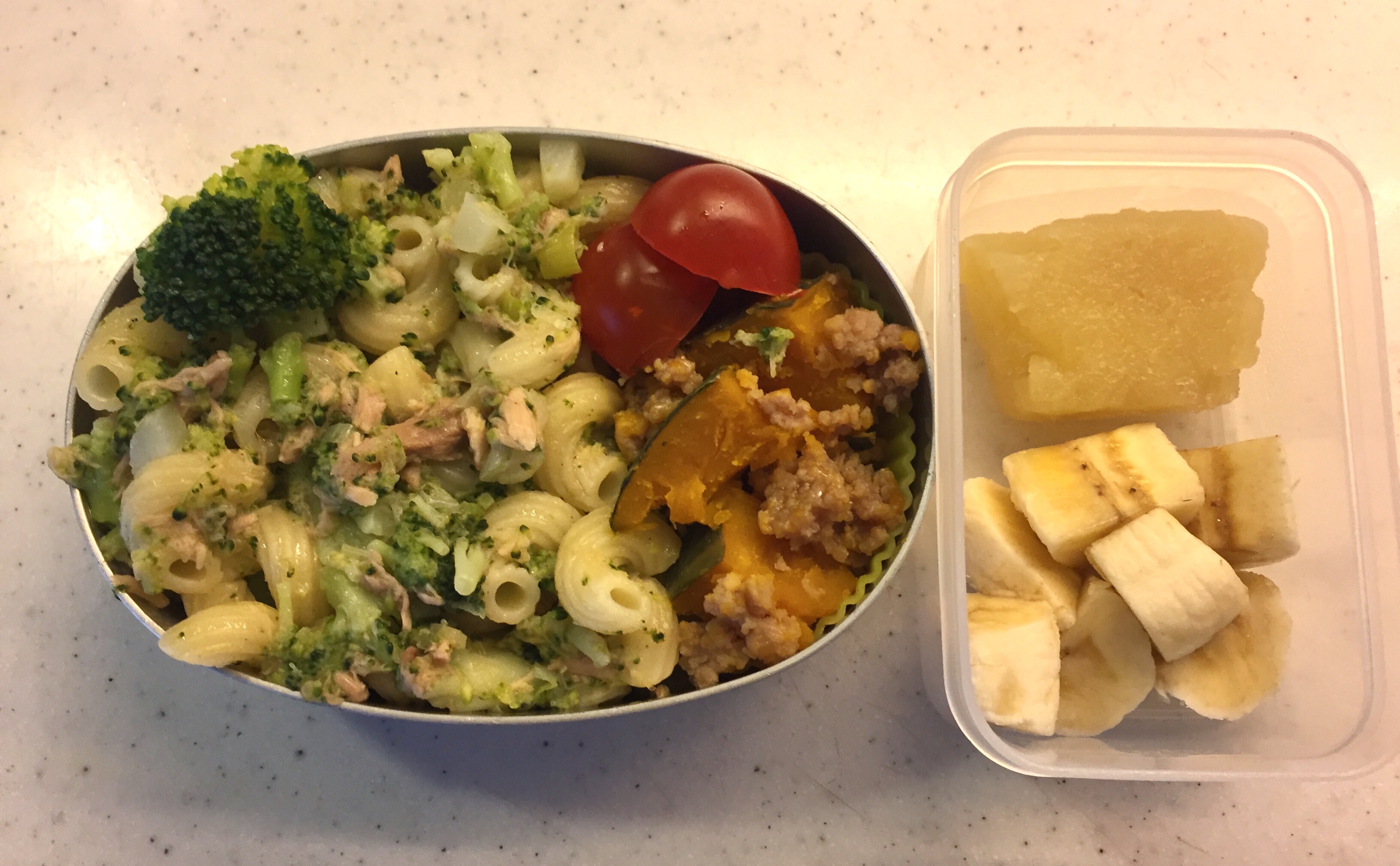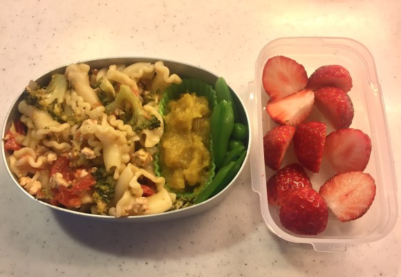 About ten years ago I lived in Italy for over a year, and I fell in love with Italian pasta. I actually lived on it during my stay there. And now I cook pasta all the the time since I often get this craving for it. My daughter, being fed by me on a daily basis, loves pasta as well. When I ask her what her favorite food is, she always answers, “PASTA!,”not rice. Being Japanese, I feel somehow neglected by my own daughter, but the good food is universal, and so is the content of my daughter’s bento.