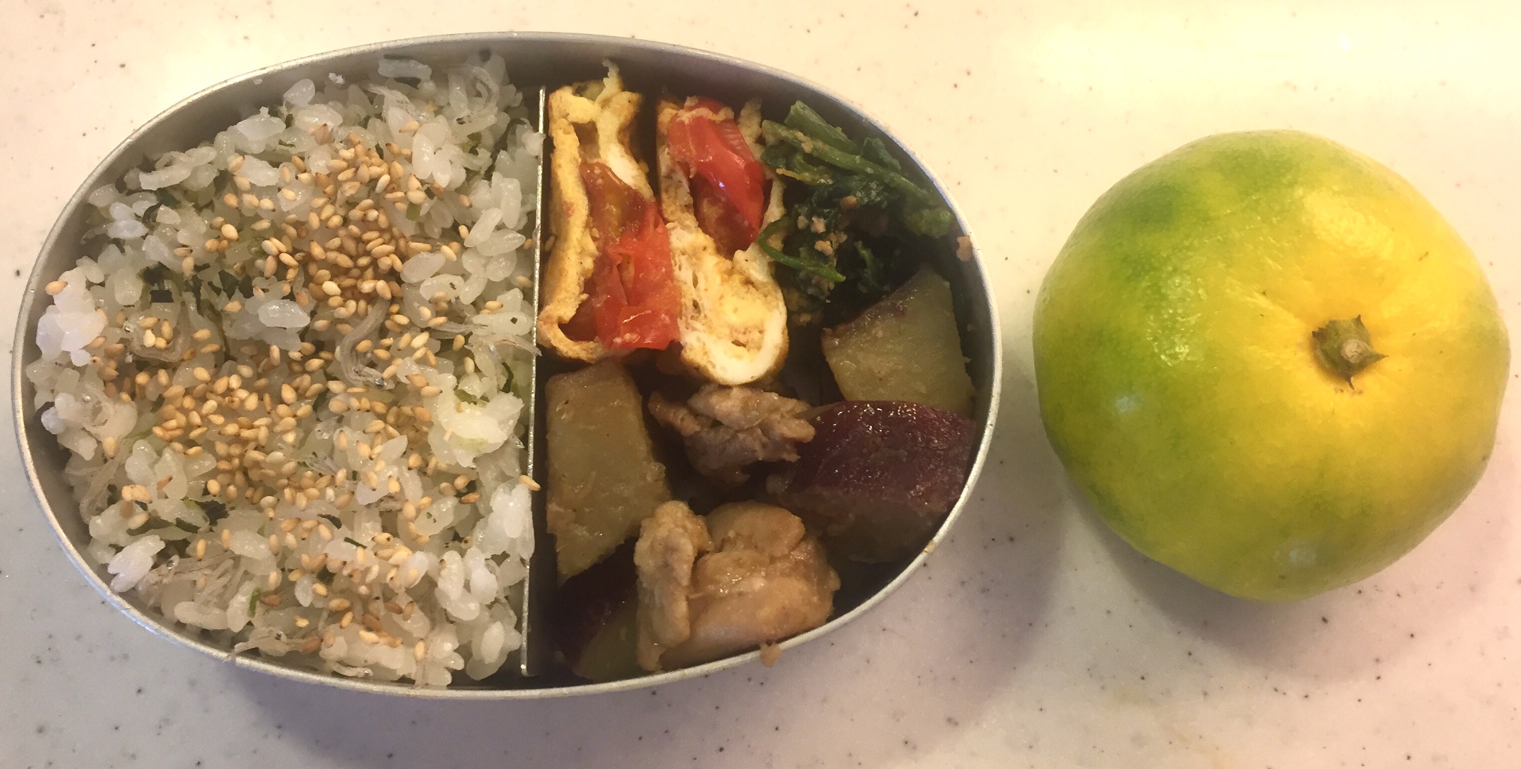 For her first bento for the year, I packed shirasu, baby sardines, over freshly cooked rice, one of the very Japanese ingredients she eagerly requested.