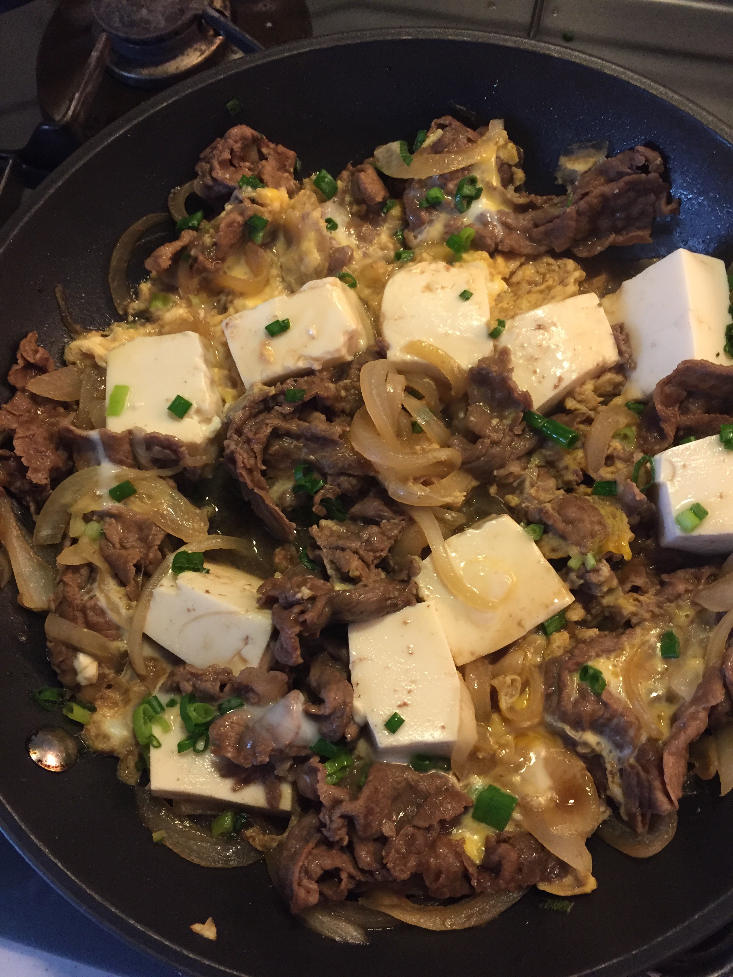 It’s a quick & easy one-pan dish, but is tasty and fulfilling thanks to thin slices of Japanese beef that’s a little fattier than lean beef that is common elsewhere.