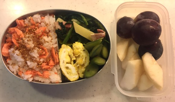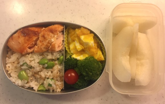 A few days ago, I mentioned about the bright colours I tend to use in my daughter’s bento, which I naturally inherited from my mum. I kept thinking why my mum’s bento involved so many vivid colours, especially considering her strong preference on subtle, understated hues when it comes to her clothing (which I also naturally inherited). Thinking back, I’ve never seen her wearing bright red, yellow or green that we both use in our bento’s.