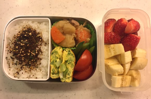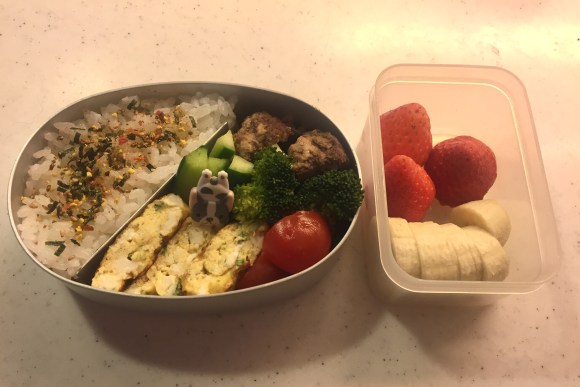 Having been inspired, the next morning I wanted to make a colorful bento for my little girl, but I totally forgot about grocery shopping. I didn’t have much in my fridge, and all I could come up with was this unflattering bento. The panda pick was my pathetic effort to give some accent. Maybe that is how the reality goes, and I accept my shortcomings to start a new week.