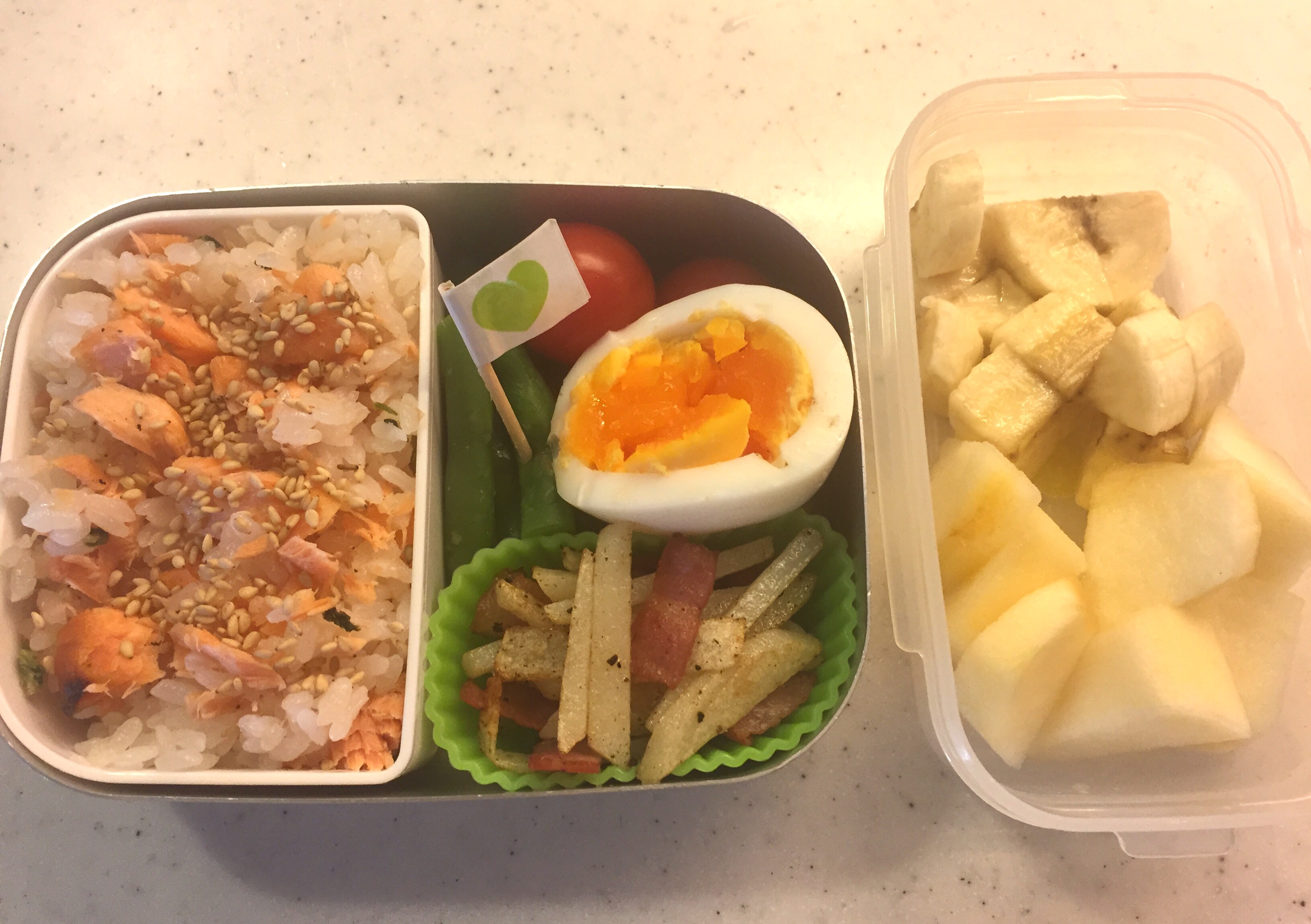 Tuesday 7/Nov – Bi-color bento with grilled salmon flake & scrambled egg