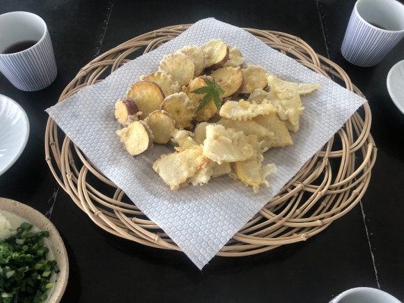 We dug more than 20 of them and brought all of them home, many of which we shared with our neighbors back in Tokyo. I cooked a few of them (need to boil them for an hour as a preparation), from Takenoko rice, Takenoko curry and the most popular Takenoko Tempura (fritter). I served the tempura on the bamboo plate handmade by my auntie, as a side dish to the Udon noodles also from my hometown of Gunma.