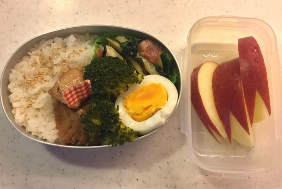 After the bento today, my clever daughter asked me not to cut out the apple in bunny shape anymore, because the apple skin contains a lot of vitamin c and very healthy.