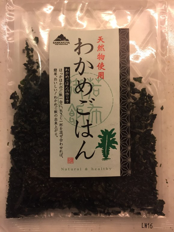 Wakame is one of many different seaweeds we eat in Japan, and one of most popular ones. The wakame I used today comes in a package dried and seasoned with salt, so all you need to do is to quickly mix a sprinkle of it into freshly cooked rice. I added jako fish and sesame for extra taste, nutrition and colour.