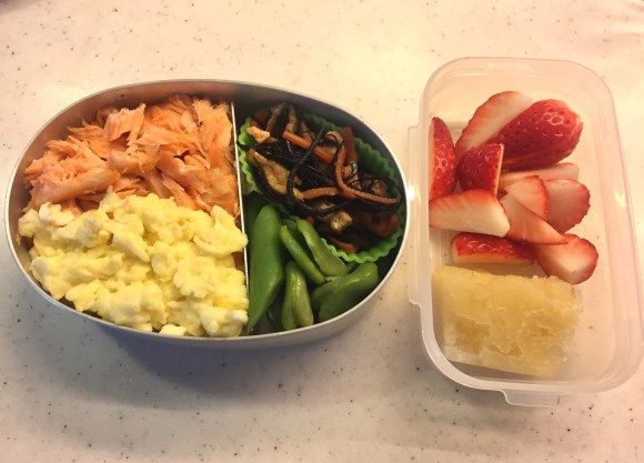 Tuesday 7/Nov – Bi-color bento with grilled salmon flake & scrambled egg